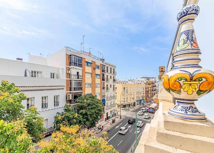 Das 6-Zimmer-Apartamentos Recaredo 7, Aticos Con Terraza Sevilla liegt ca. 5 Minuten zu Fuß von der Canos de Carmona entfernt und bietet einen Ausblick auf die Stadt.